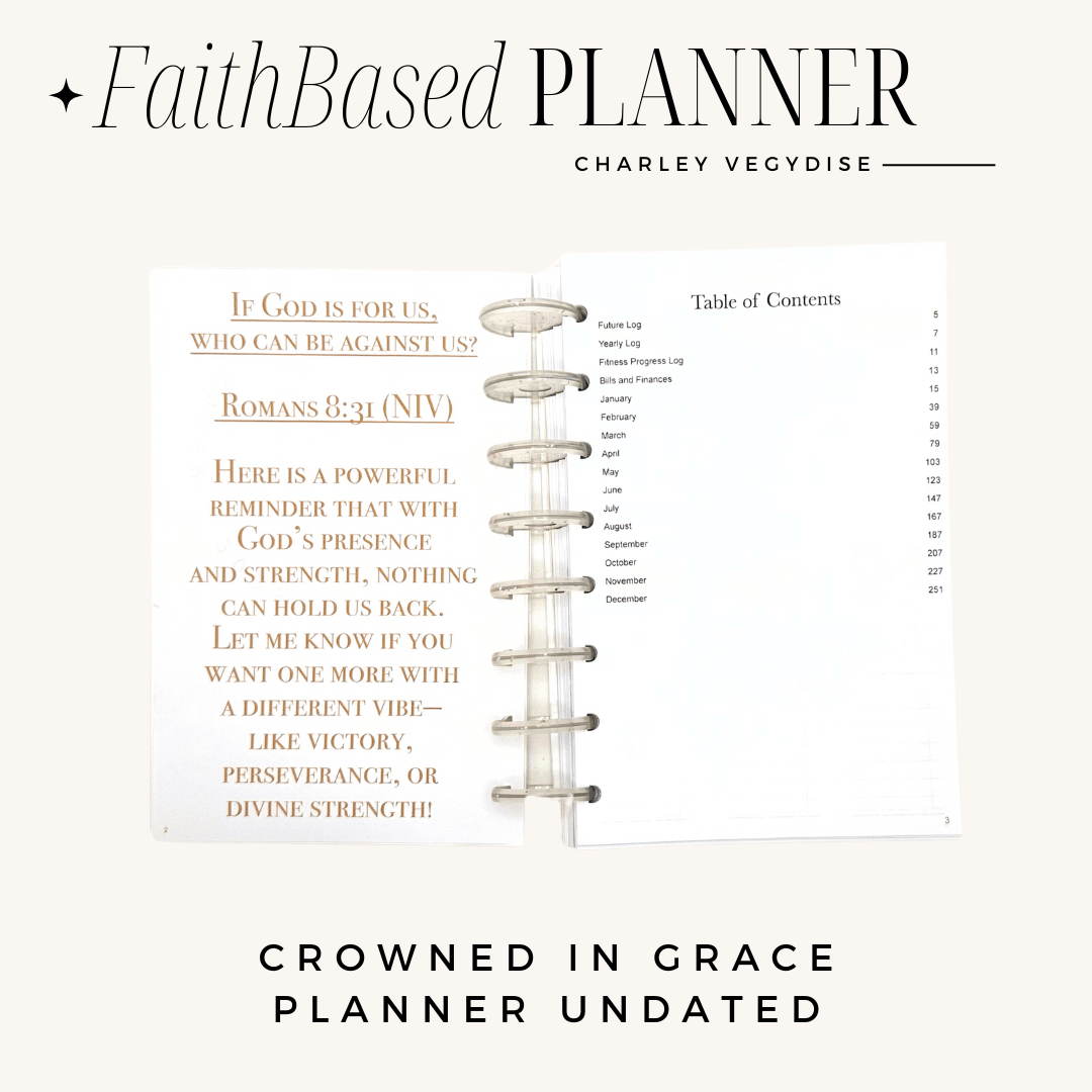 Perfect for Christian women seeking a balance between faith, career, and family, the Crowned in Grace Un-dated Planner is your ultimate tool for a prosperous and spiritually fulfilling year.